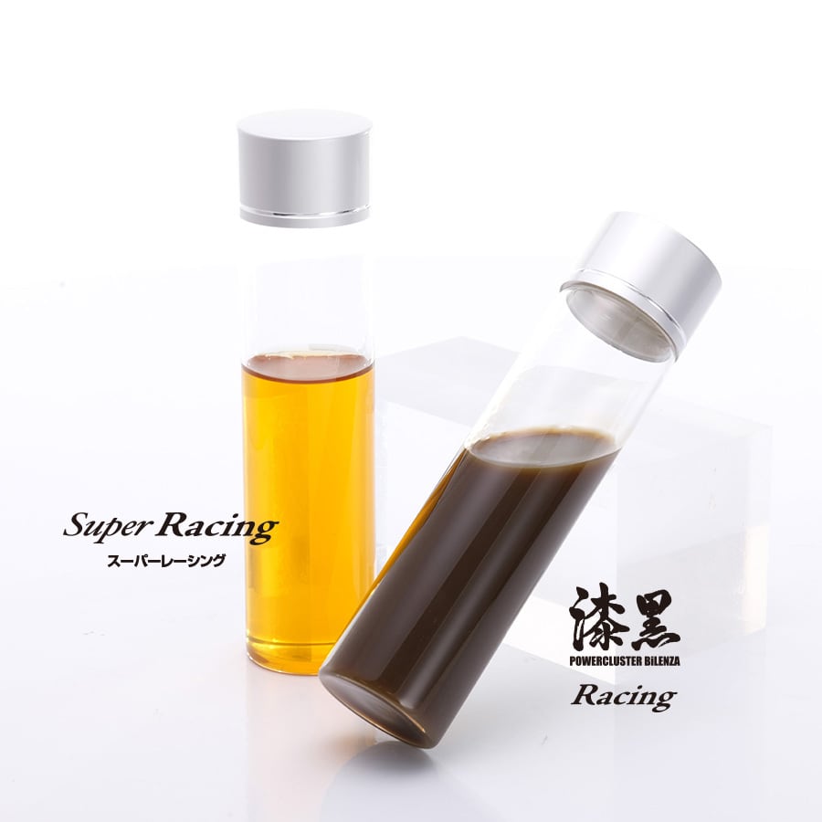 漆黒に使用する添加剤はそれぞれ単体でも効果を発揮しますが、複合使用することにより最大の効果を発揮します。 それらの添加剤(薬品原液)を最大効果まで添加して抵抗を限りなく減らしていますが総合性能はベースオイルに依存する為、 密閉性から生まれるトルク感、パワー感及び耐熱、耐久性は各グレードにより異なります。